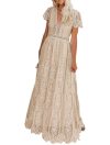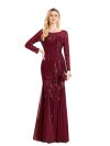 - This is a long length soft skirt dress made out of an all over beaded embellished mesh knit fabric, with a blouson waist, short sleeves, boat neckline, and zipper at center back