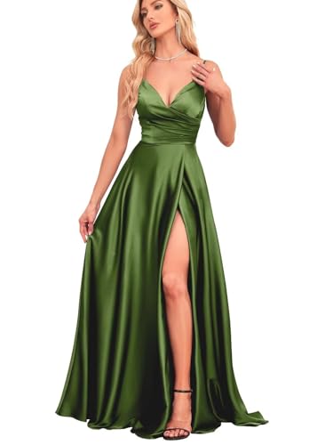 - Style:Bridesmaid Dress for Wedding,Spaghetti Straps V Neck Satin Bridesmaid Dresses for Teens 2025 A Line Long Evening Party Gowns with Pocket Sleeveless Formal Evening Party Dress Ruched High Waist Bridesmaid Dresses with Slit.Fashionable and classic design, You will receive many compliments on this dress.