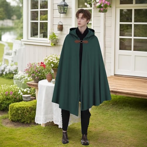 - 【Extremely Versatile and Effective Design】Half-cloak,Not a Full Length Cape.It Falls Below the Hip and Looks Perfect with Many Men’s & Women’s Ensembles. A metal loop clasp closure connecting leather buckle at the neck , keeps this gothic capelet secure around you.