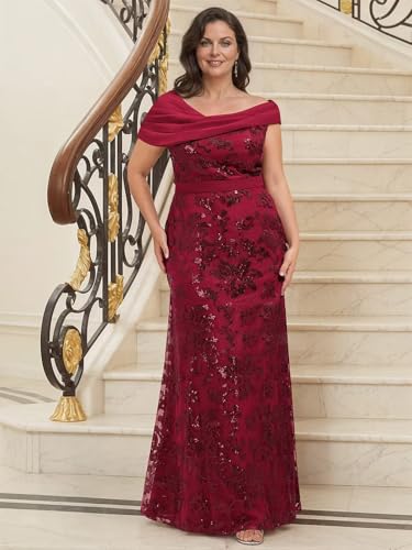 - Design:Mermaid Long Mother of The Bride Dresses for Women,Chiffon,Sparkly Sequin,Lace Appliques,Off Shoulder,Ruched,Pleated,Floor Length,Empire Waist,Petite,Modest,Classy,Zipper.