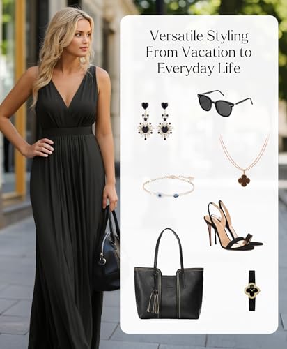 • Endless Styling Possibilities: Deep V neck dress paired with a versatile tie, allowing you to customize your look. Wrap it around your neck for a halter effect, cinch it at the waist for definition, or let it drape for a soft, romantic finish