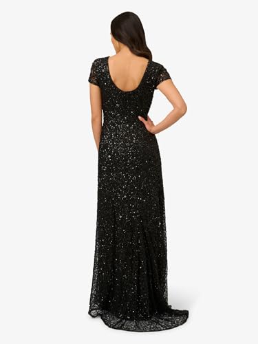 • Pair this stunning short sleeve sequin gown with a bold, red lip and strappy heels to steal the show
