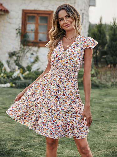 - Features: Bohemian mini dress,short dress for women,floral dress for women short,smocked dress women,floral mini dress,boho dress,babydoll dress,women’s summer dresses,flowy ruffle mini dress,smocked flutter sleeve dress,v neck floral dresses,swing a line dresses for women,floral sundress,short sleeve dress for women,spring dress